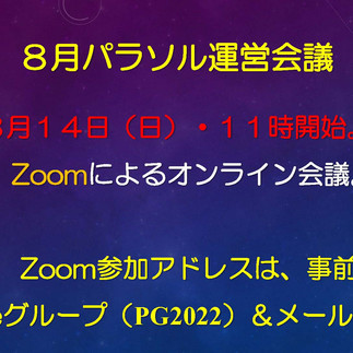・8月パラソル運営会議は、8月14日・11時Zoomオンライン会議予定。